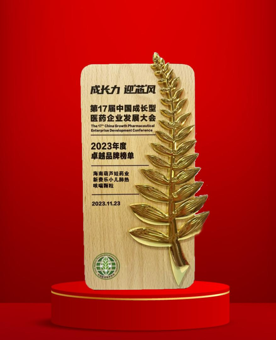 11月22日至25日,由中国医药物资协会和厦门市人民政府主办的第17届中国成长型医药企业发展大会在厦门拉开帷幕。会上,鼎博药业集团党委书记、董事长刘景萍获得“金叶奖·2023年度医药行业风云人物奖”,集团旗下产品新费乐®小儿肺热咳喘颗粒荣膺“2023年度卓越品牌奖”。